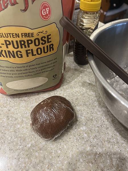 2.揉成麵團後,用保鮮膜包起來,可以放入冰箱冷藏10-15分鐘。