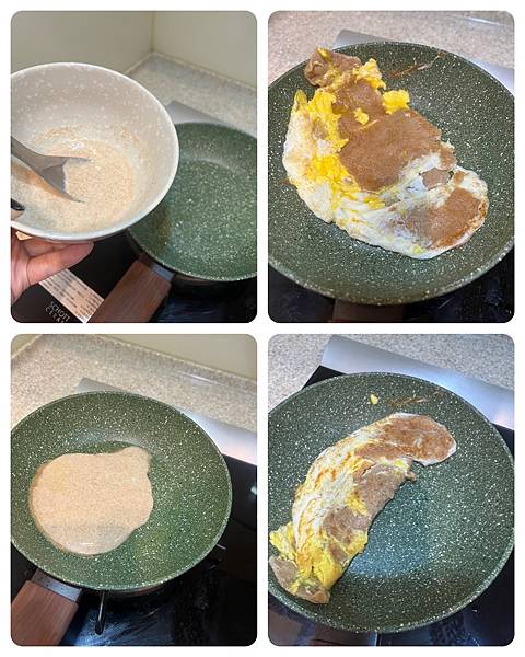 3.翻面再煎至金黃即可完成!小麥蛋餅!!