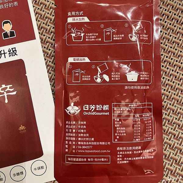 我自己是隔水加熱,撕開包裝就能享用溫熱的淬魚精囉!